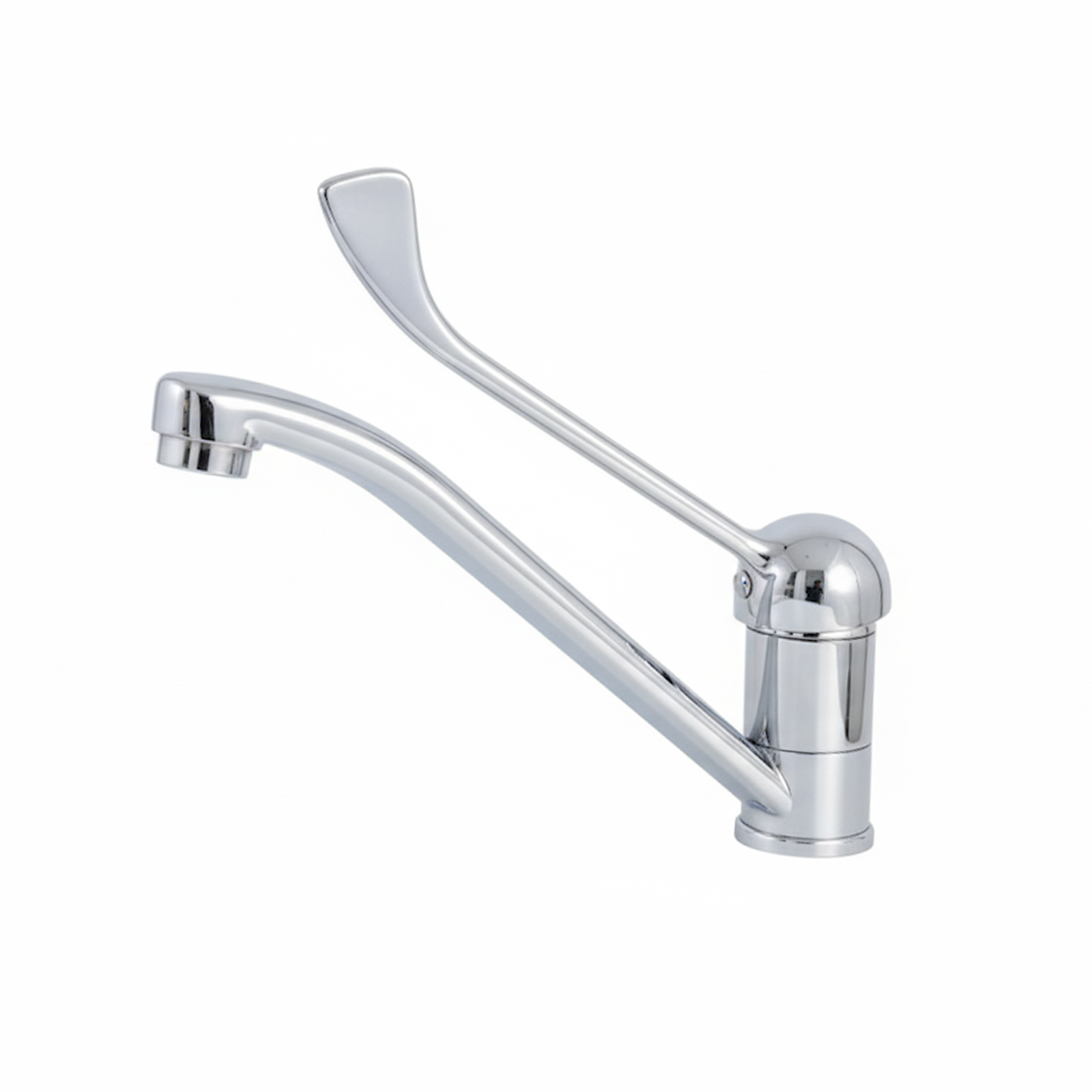 شیر ظرفشویی تک‌پایه آبریز بلند با بدنه‌ای مقاوم از جنس برنج و پوشش کروم باکیفیت، ضمن برخورداری از آبریز بلند، نصب آسان و کاربرد راحت، گزینه‌ای مناسب برای استفاده در مراکز آزمایشگاهی، بیمارستانی و صنعتی به شمار می‌آید.